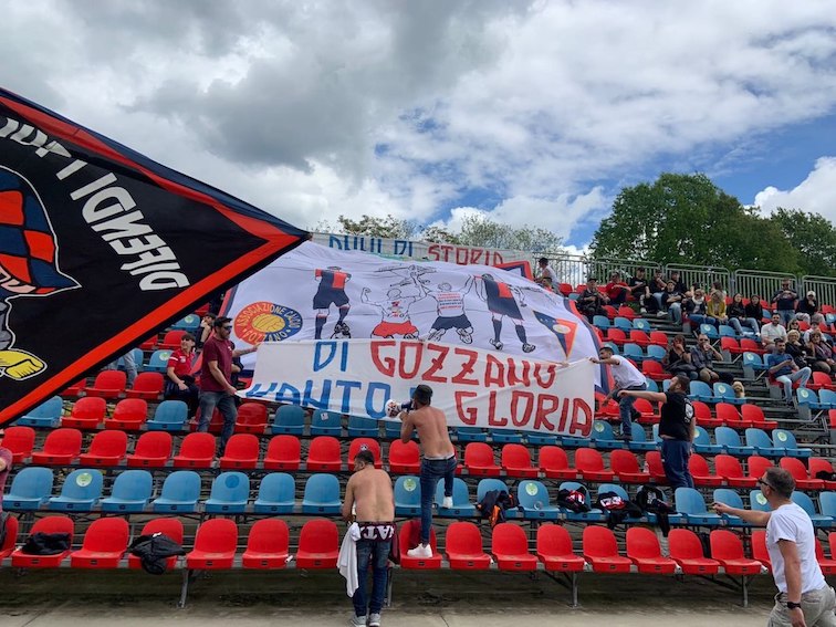 GOZZANO – 05-05-2024 – Arriva un pareggio per il Gozzano nell’ultimo turno di campionato contro il Varese, in una giornata di festa, con ingresso gratuito al D’Albertas per entrambe le tifoserie e un clima che inizia ad essere estivo. Presente in tribuna, al fianco dei Testi Mati un gruppo di ultras del Pontedera con cui i cusiani sono gemellati.