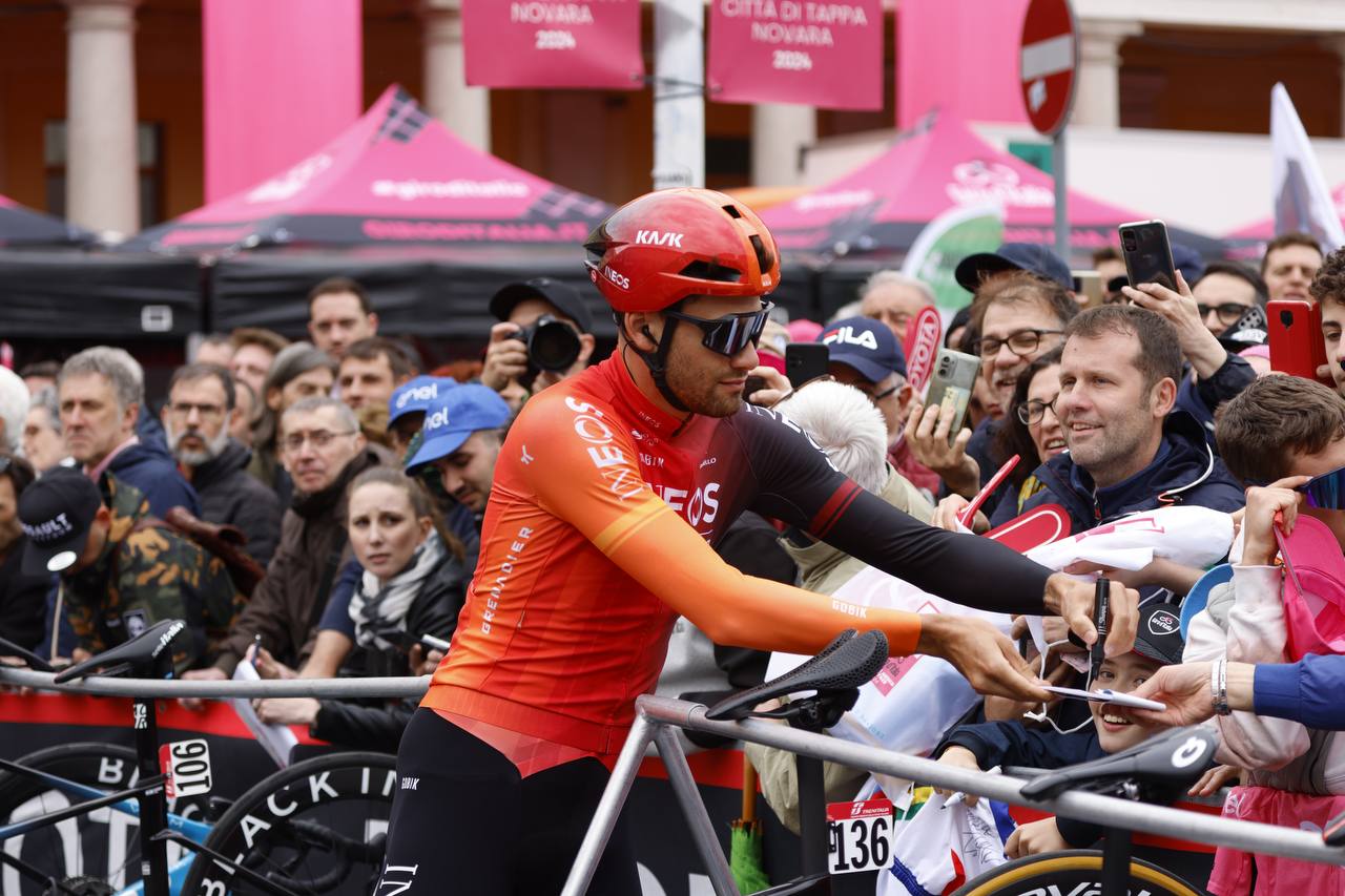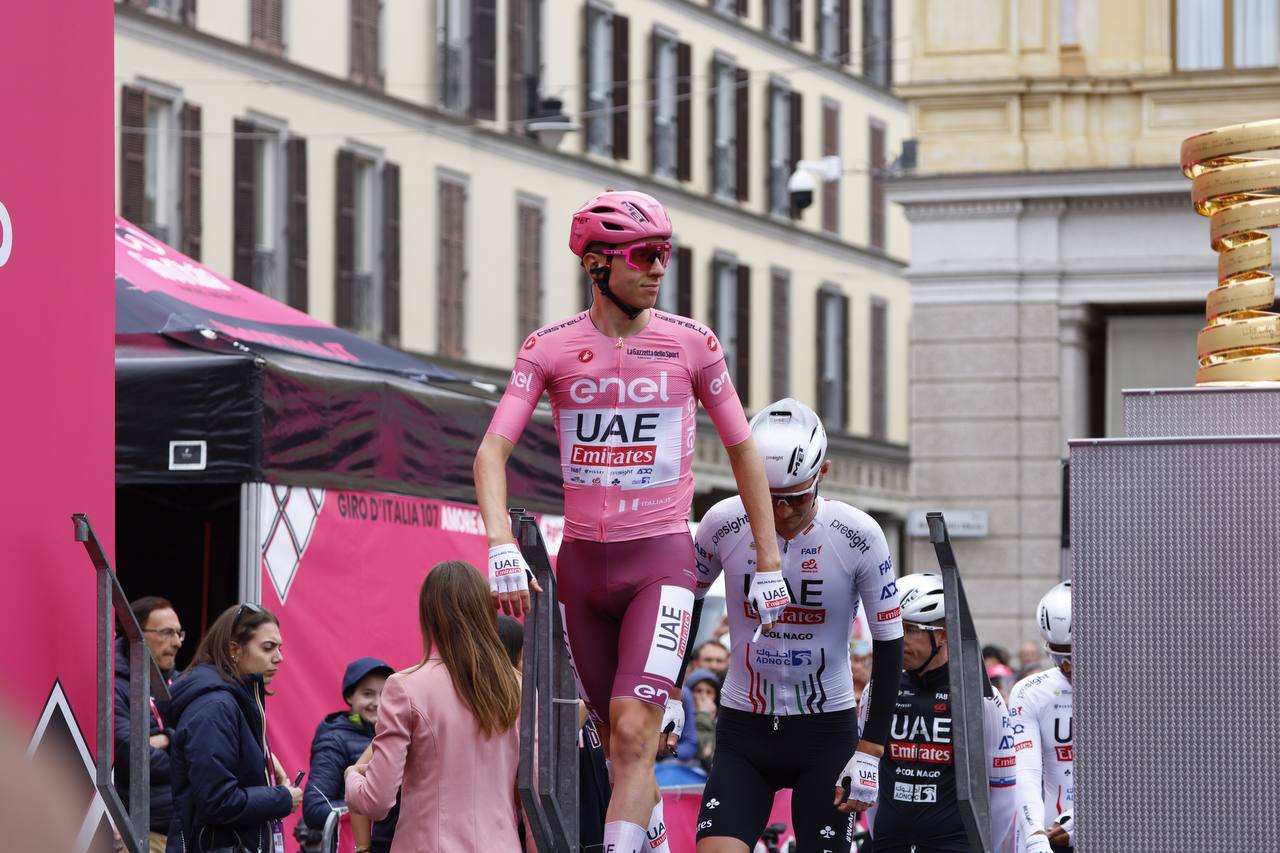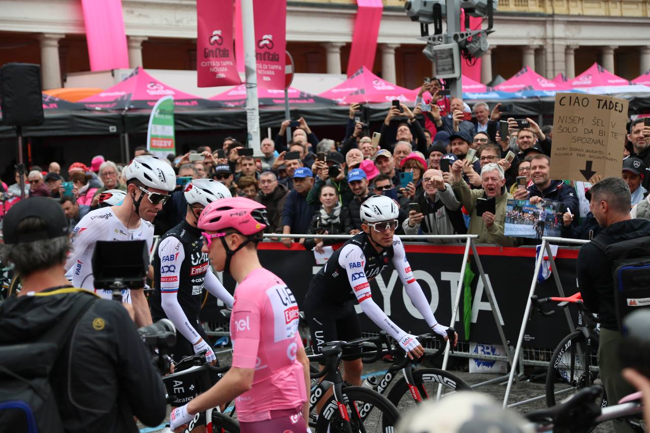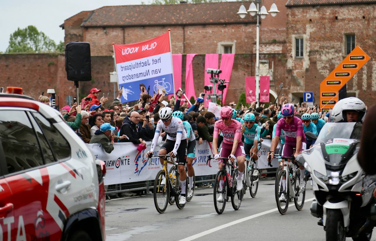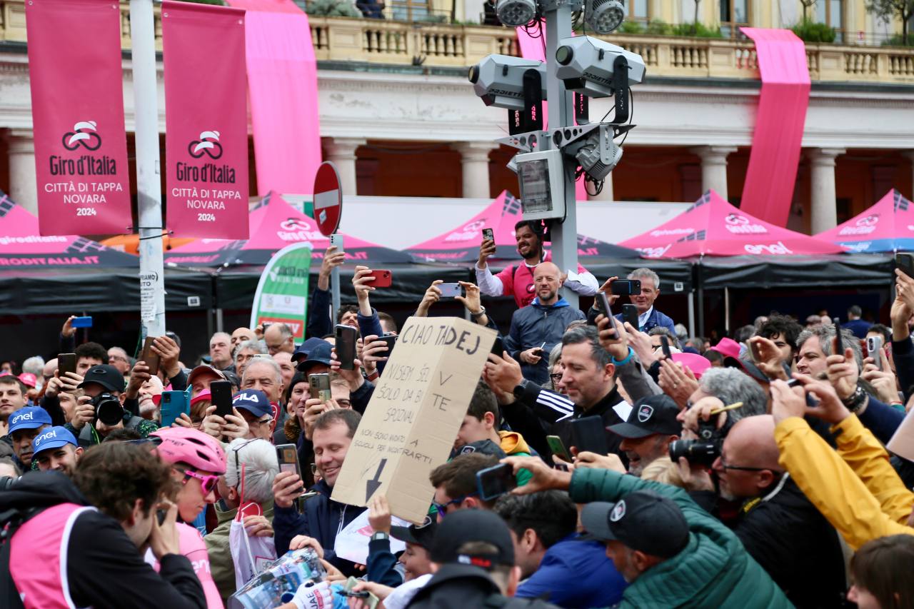 NOVARA - 06-05-2024 -- Una giornata uggiosa ha salutato il Giro d'Italia a Novara. Dal capoluogo gaudenziano, infatti, poco dopo le 13 di lunedì 6 maggio, è partita la terza tappa dell'edizione 2024 della corsa rosa con arrivo previsto a Fossano dopo 166 km. In piazza Martiri il cuore dell'evento, con il villaggio di partenza, tanti stand, tanti appuntamenti realizzati ad hoc per l'occasione, e l'atteso foglio firma prima della partenza dei protagonisti di questo Giro d'Italia. Sono stati davvero tanti i tifosi che si sono assiepati sia in piazza che nelle vie circostanti, sino all'uscita dalla città, per salutare i corridori, guidati dalla Maglia Rosa Tadei Pogacar. Tanti gli applausi e bagno di folla anche per l'atteso Filippo Ganna.