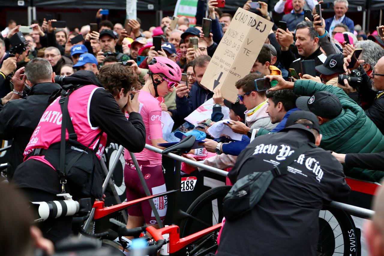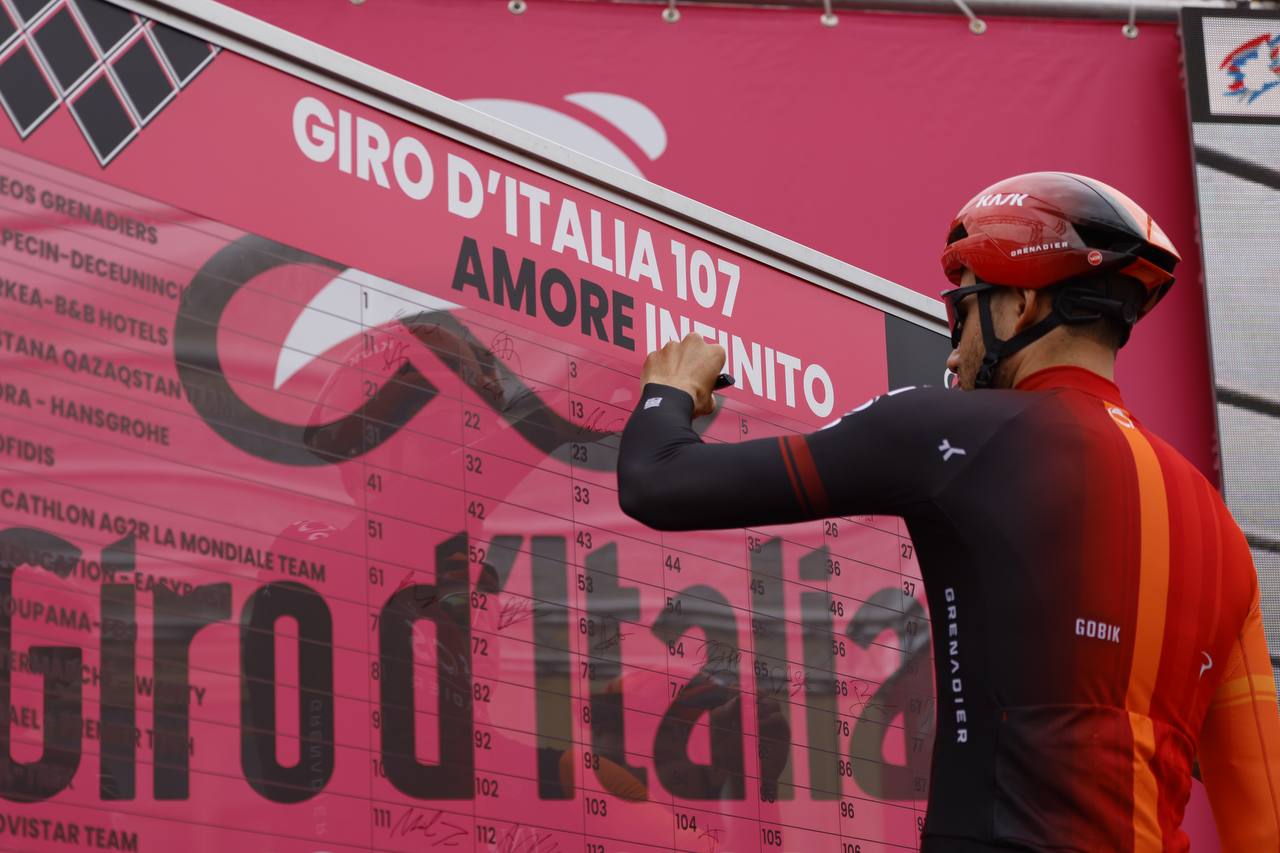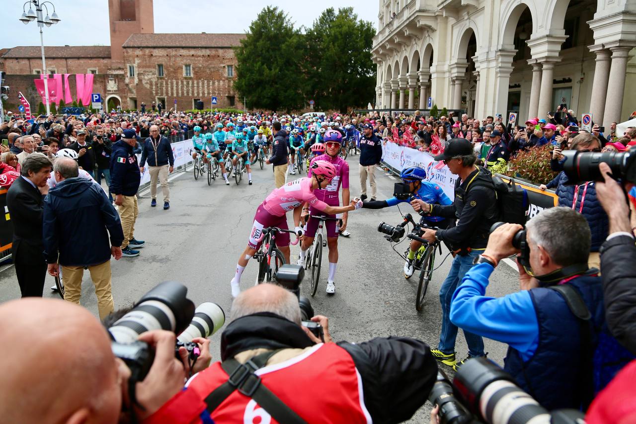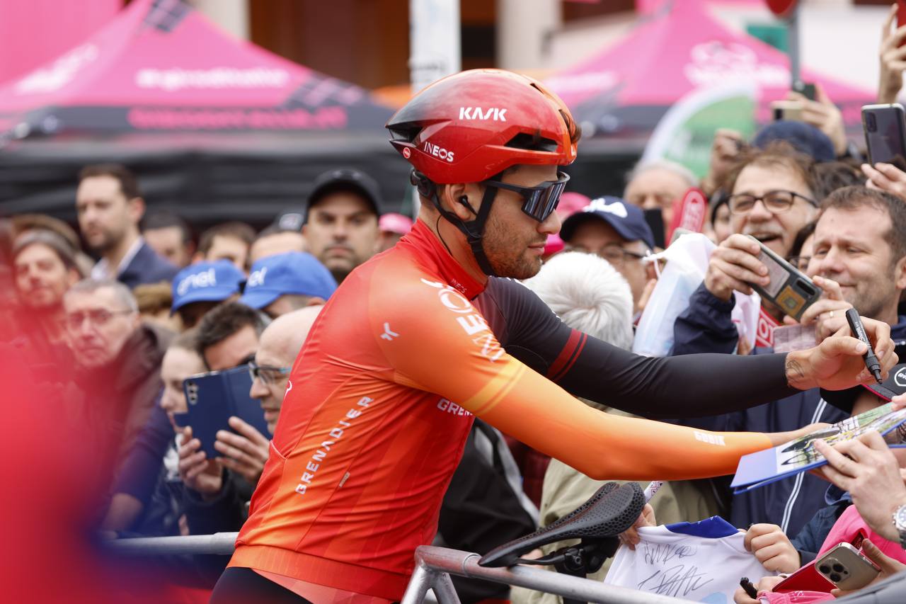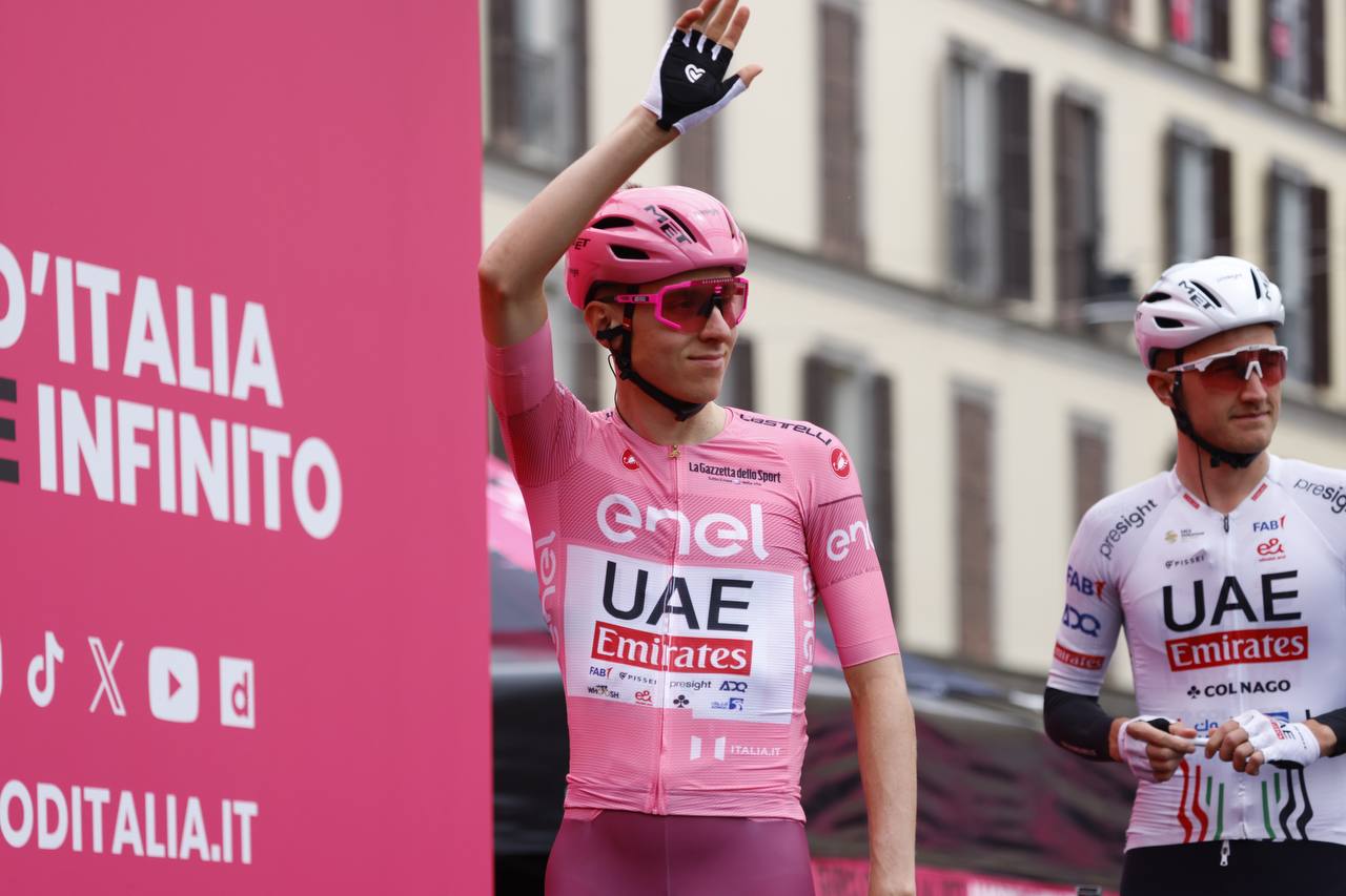 NOVARA - 06-05-2024 -- Una giornata uggiosa ha salutato il Giro d'Italia a Novara. Dal capoluogo gaudenziano, infatti, poco dopo le 13 di lunedì 6 maggio, è partita la terza tappa dell'edizione 2024 della corsa rosa con arrivo previsto a Fossano dopo 166 km. In piazza Martiri il cuore dell'evento, con il villaggio di partenza, tanti stand, tanti appuntamenti realizzati ad hoc per l'occasione, e l'atteso foglio firma prima della partenza dei protagonisti di questo Giro d'Italia. Sono stati davvero tanti i tifosi che si sono assiepati sia in piazza che nelle vie circostanti, sino all'uscita dalla città, per salutare i corridori, guidati dalla Maglia Rosa Tadei Pogacar. Tanti gli applausi e bagno di folla anche per l'atteso Filippo Ganna.