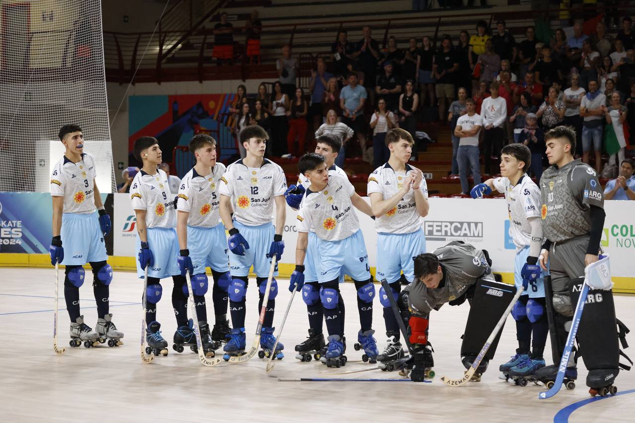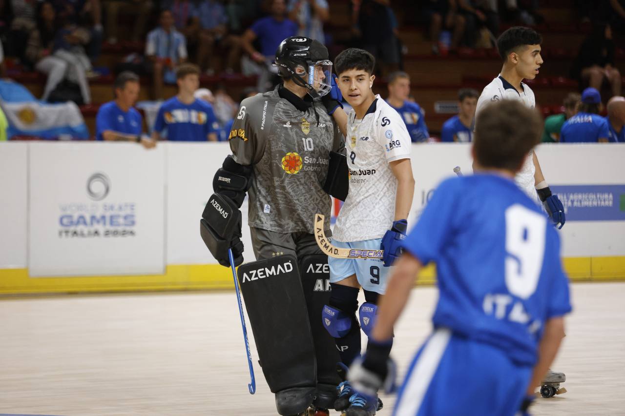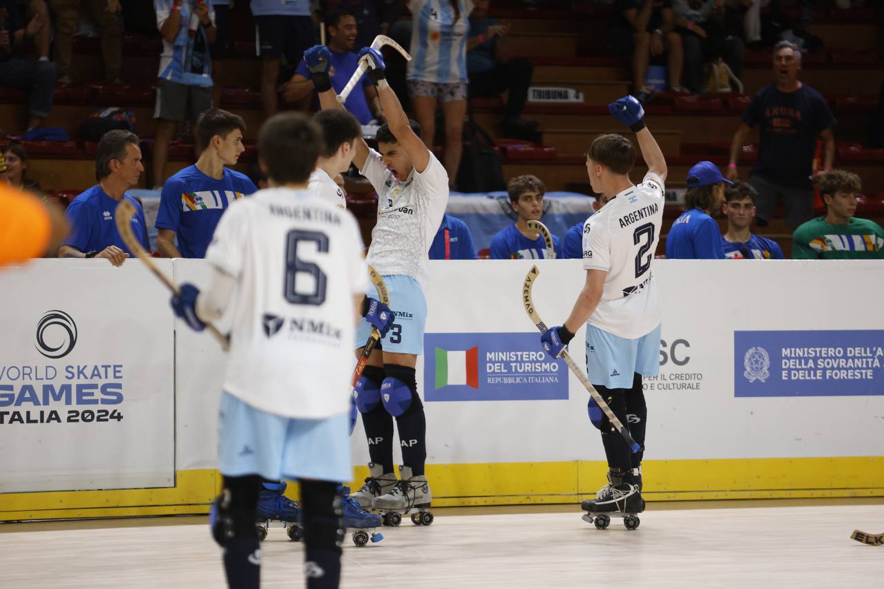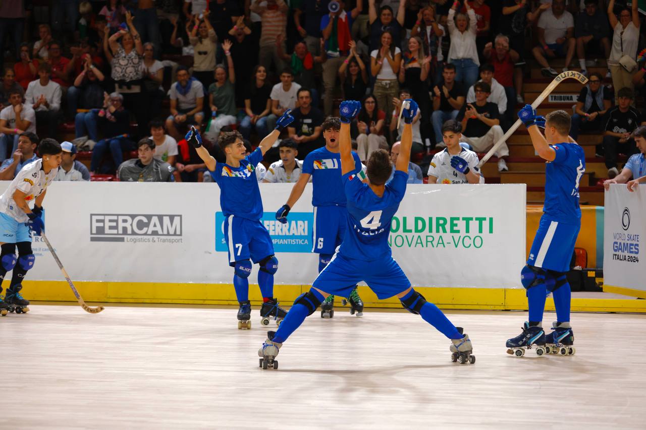 NOVARA - 15-09-2024 -- Quarto posto per l'Italia U19 di mister Bertolucci ai mondiali di Hockey su pista in corso di svolgimento a Novara. Gli azzurrini nella finale per la medaglia di bronzo giocata sabato 14 settembre, sono stati infatti sconfitti dall'Argentina per 7-4. Il titolo mondiale di categoria è invece andato alla Spagna, favoritissima e che aveva sconfitto proprio gli azzurri in semifinale, che ha battuto in finale il Portogallo per 3-1.