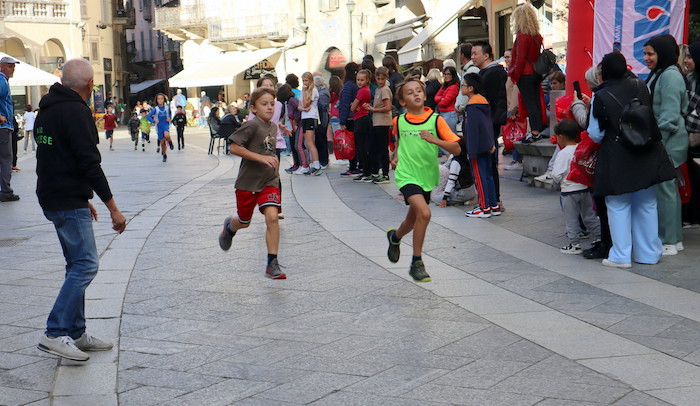 DOMODOSSOLA – 5-10-2024 -- Anche la seconda edizione del Minitrail organizzato dall’Atletica Avis ossolana nel pomeriggio di ieri venerdì 4 ottobre ha avuto un successo straordinario. Oltre 150 giovanissimi scolari si sono impegnati nel circuito di 400 metri al centro della città con partenza e arrivo in una piazza Mercato gremita di pubblico. I piccoli di 5-7 anni hanno percorso un giro, quelli di 8-9 (2 giri) e tre i giovanissimi di 10-11, preceduti in bicicletta da Alessandro Persini e come scopa Sara Mottini. Speaker dell’appuntamento Francesca Sbaffi.