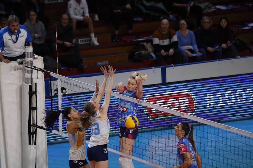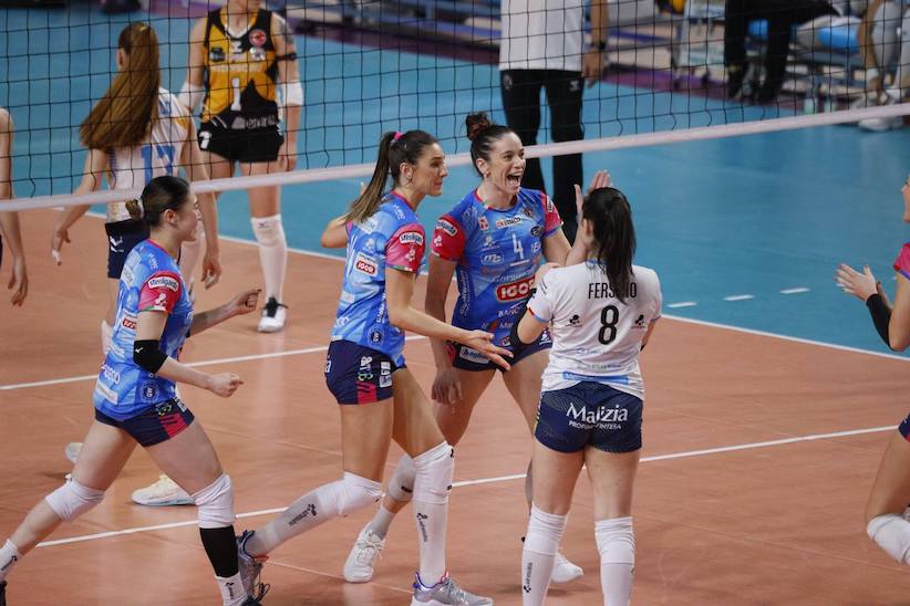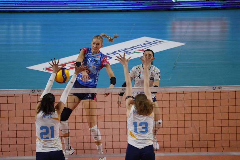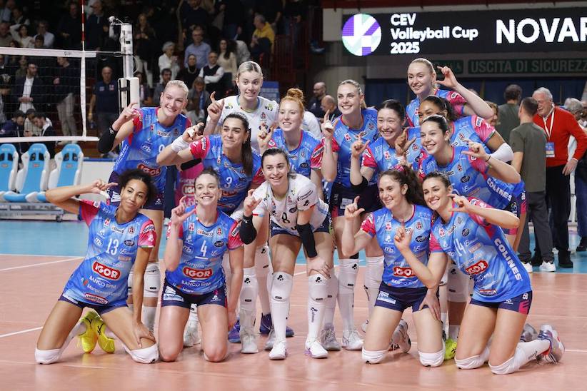 NOVARA - 23-01-2025 --Impresa europea per la Igor Volley di Lorenzo Bernardi, che in un Pala Igor caldissimo ribalta il 3-1 subito all’andata dei Playoff di CEV Cup ad Aksaray infliggendo un secco 3-0 al Kuzeyboru e dominando letteralmente il golden set di spareggio. Per le azzurre si aprono dunque le porte dei quarti di finale di CEV Cup. Il successo matura nel segno di Tatiana Tolok, 32 punti, e di una prestazione di grandissimo carattere della squadra tutta, al cospetto di un avversario che ha di fatto “mollato” solo a metà del golden set, dopo aver cercato in tutti i modi di rimanere in partita.