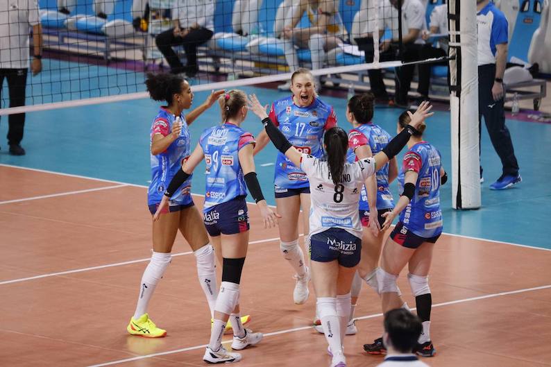 Igor Gorgonzola Novara: Akimova (L) ne, Villani ne, Bosio 4, Bartolucci ne, De Nardi ne, Fersino (L), Alsmeier 7, Ishikawa 16, Mims, Bonifacio 9, Aleksic 5, Mazzaro ne, Tolok 32, Squarcini ne. All. Bernardi.
