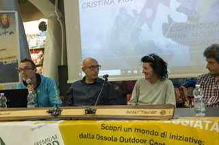 CREVOLADOSSOLA- 21-10-2019- “Volevo fare questa cosa per tutte le donne, è stata una sana follia”. Grande e partecipata festa all'Outdoor Center di Crevoladossola, dove, per la prima volta in Ossola, Cristina Piolini, fresca di uno straordinario record alpinistico, è stata festeggiata dalla sua gente, alla presenza di chi l'ha sostenuta nell'impresa, da Ivan Svilpo per la logistica e le comunicazioni, e Fabrizio Fregonara della Whitelandski, azienda che ha prodotto gli sci per questa impresa, a Franceso Poi che l'ha accompagnata, ma solo sino al campo 2, a tutti i suoi fans, accorsi in massa sabato pomeriggio. La spedizione di Cristina Piolini, denominata #Eighthousand Pink Lady Mountain, si è conclusa nel migliore dei modi ed ha raggiunto i suoi massimi obiettivi, Cristina ha infatti raggiunto la vetta del Manaslu 8.163 mt. ed ha compiuto la prima discesa femminile integrale della montagna con gli sci.