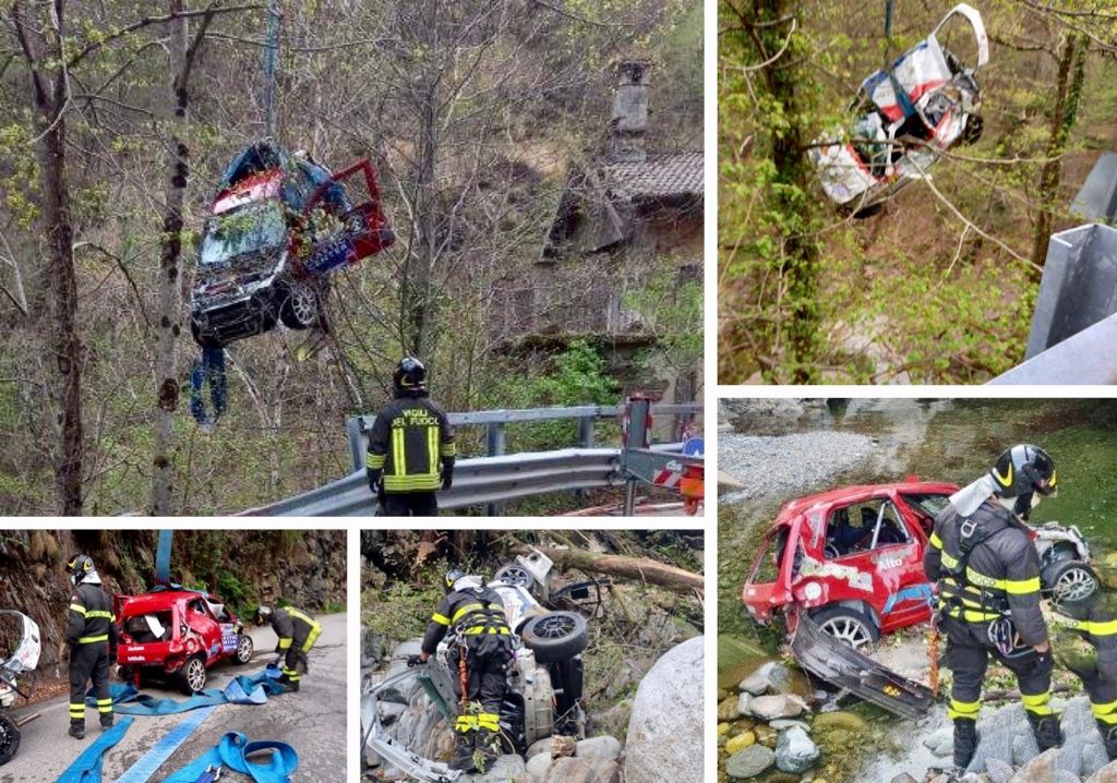 VAL CANNOBINA - 26-04-2021 - Intervento dei Vigili del Fuoco in valle Cannobina per il recupero delle due autovetture uscite fuori strada durante una prova del rally delle Valli Ossolane.