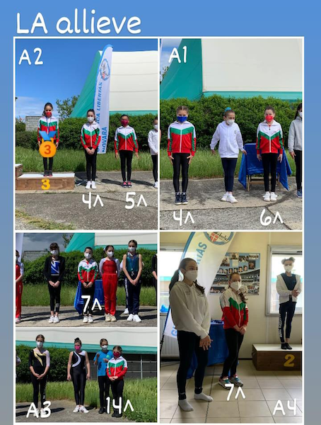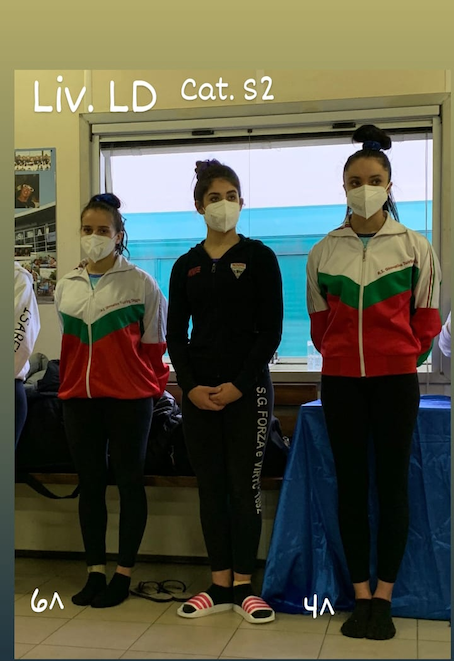 - Altri ottimi risultati anche nella giornata di domenica: nel livello LA categoria Allieve 1 quarto posto per Leroux Cloé e sesto per Portoni Alice mentre per la categoria Allieve 2 bronzo per Melone Alessia, quarto posto per Fontana Alessia e quitno per Gigo Sofia; categoria Allieve 3 settimo posto per Dalto Marissa e quattordicesimo piazzamento per Folino Chiara; nella categoria Allieve 4 settimo posto per Di Matola Luisa; ora gli allenamenti proseguiranno per perfezionare gli esercizi in vista delle finali nazionali a Rimini previste per fine giugno.