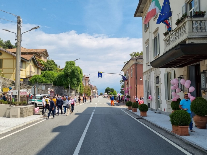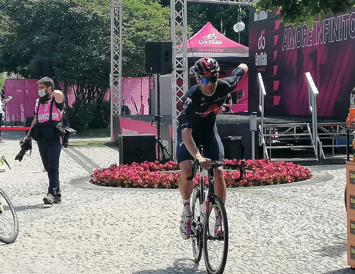 VERBANIA - 29-05-2021 -- È stato Filippo Ganna il protagonista del Giro d’Italia che stamane è partito da Verbania. Il campione del mondo a cronometro, già maglia rosa nell’edizione 2020 disputata in autunno, è stato calorosamente accolto non solo dai parenti, dagli amici e dai fan che sono scesi sul lungolago per salutarlo. A dargli il benvenuto, consegnandogli la pergamena di cittadino benemerito che non ha potuto ritirare lo scorso 8 maggio, giorno del patrono San Vittore, proprio perché impegnato al Giro, è stata l’Amministrazione comunale. Il rigido protocollo anti-Covid necessario per preservare gli atleti e le squadre e per garantire la sicurezza della competizione ha reso più difficoltose le operazioni ma, alla fine, Ganna ha mostrato dal palco l’attestato che lo riconosce come verbanese benemerito, anche se in realtà è cresciuto e vive a Vignone.