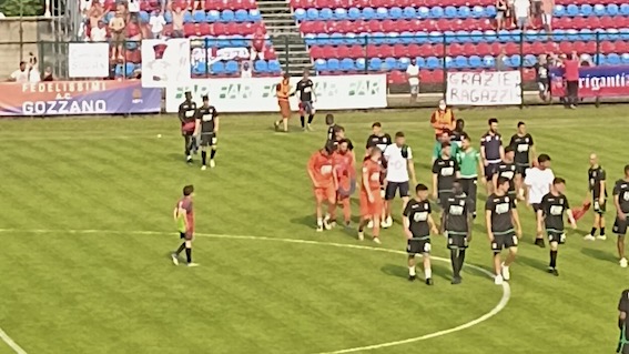 GOZZANO -17-06-2021 -- Un Gozzano con la testa già in vacanzae con una festa in tono minore, lascia via libera al Fossano che si salva ai danni dei cugini del Borgosesia. Ospiti subito in vantaggio con una triangolazione che manda in rete De Souza con la difesa di casa immobile. Fossano che può raddoppiare al 16’ con Specchia, ma Cincilla respinge. Al 31’ sussulto del Gozzano che pareggia con Mastaj ben servito da Sylla. Poi ci prova di nuovo il Fossano con De Souza (respinge il portiere) e Giraudo (palla fuori) mentre al 42’ Mastaj si divora il 2-1. Soda mette in campo nella ripresa un po’ di titolari, tra cui Allegretti che sembra tra i pochi che abbia voglia di imporsi, ma al 14’ De Souza salta tutta una difesa di sale e deposita in gol con Cincilla in ritardo sulla parata. Il Gozzano cerca di salvare la faccia ottenendo il pareggio, ma Rampin sbaglia a porta vuota, poi Galvagno salva sulla linea ed una rovesciata di Allegretti termina alta. I locali reclamano due rigori : per un mani in area apparso netto e un fallo su Sylla, ma a 4’ dal termine Cincillà si supera compiendo tre prodezze di fila ed evitando il 3-1. Alla fine festa con consegna della Coppa di Lega per il successo che riporta i cusiani in C, mentre la famiglia Caleffi ha seccamente smentito di essere interessata a rilevare il Gozzano.