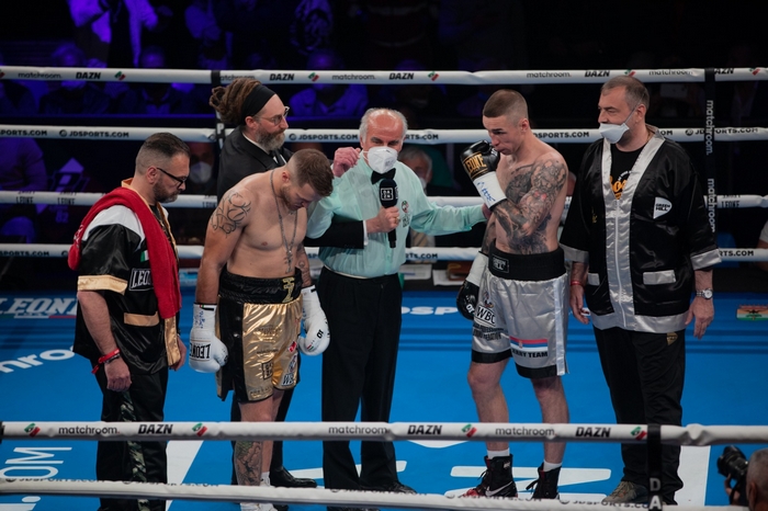 Contro il serbo Marko Nikolic, 33enne già titolato e presentatosi sul ring con uno score di 28 vinte e una persa, è arrivata un’affermazione schiacciante, per kappaò tecnico. Il clou della Verbania boxing night è terminato a metà del secondo round, al secondo atterramento dell’avversario. E dire che la prima ripresa s’era conclusa con lo slavo in forcing, fermato dal gong mentre stava mettendo in forte difficoltà il campione italiano, sorpreso da un destro al volto che ha accusato. All’angolo, il papà Andrea Zucco, Pippo Castellano e Andrea Canova hanno caricato Ivan, che è partito deciso, trovando subito un forte destro che ha fatto cadere a terra Nikolic. Contato, s’è rialzato ma con poca lucidità. Zucco l’ha visto in difficoltà e ha affondato i colpi. È col sinistro che gli ha fatto male, facendolo cadere di nuovo e inducendo l’arbitro a decretare lo stop anticipato.