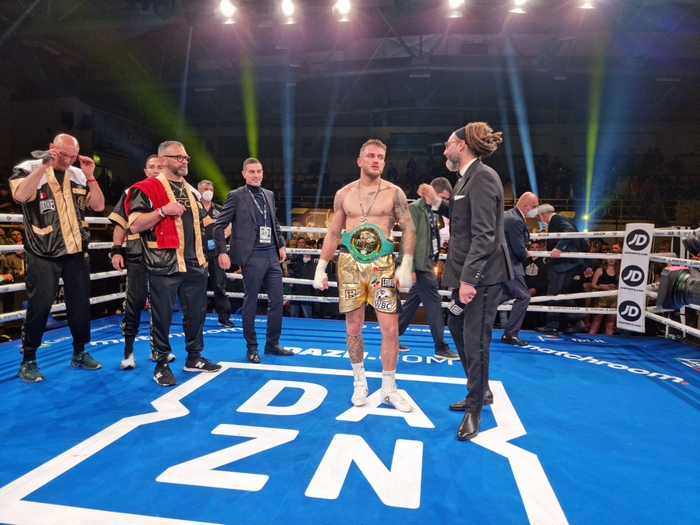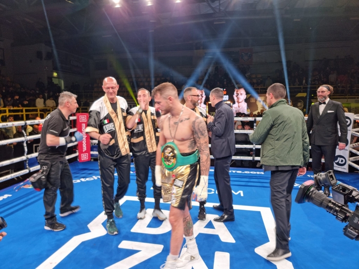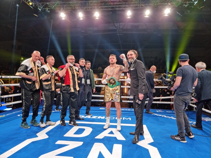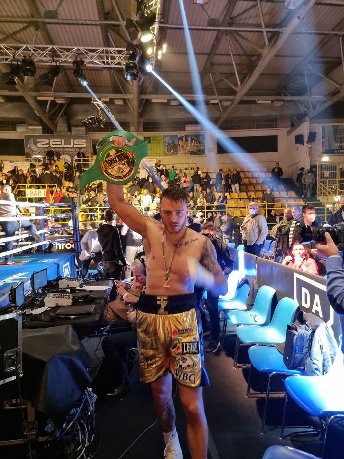 VERBANIA - 23-04-2022 -- Una vittoria netta, meritata e forse anche inaspettata per come è maturata. Nel tripudio del palasport di Verbania, che ha visto il “suo” Ivan Zucco indossare la cintura verde di campione internazionale Wbc dei supermedi, s’è scritta un’altra pagina dell’ascesa del 26enne pugile verbanese, professionista dal 2017 che inizia concretamente ad aspirare a palcoscenici più grandi.