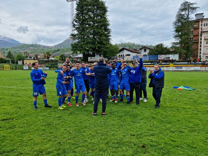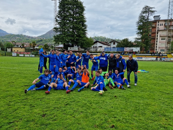 VERBANIA - 25-04-2022 -- Lo Stresa è promosso in serie D. La sofferta vittoria ottenuta sul Verbania e la rete di Mastromarino in pieno recuperano coronano il sogno dei blues che vincono il campionato di Eccellenza con tre giornate di anticipo e, dopo tre anni, tornano nella massima serie dei dilettanti.