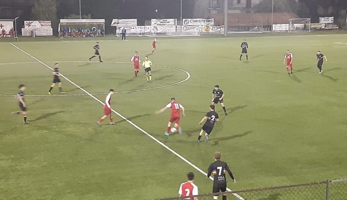 Al 10' cross da sinistra dei locali, tiro al volo di Romano che però si perde sul fondo. Dieci minuti più tardi punizione dalla distanza per la squadra di Molle, batte Austoni con un gran tiro che colpisce l'incrocio dei pali e poi termina fuori.
