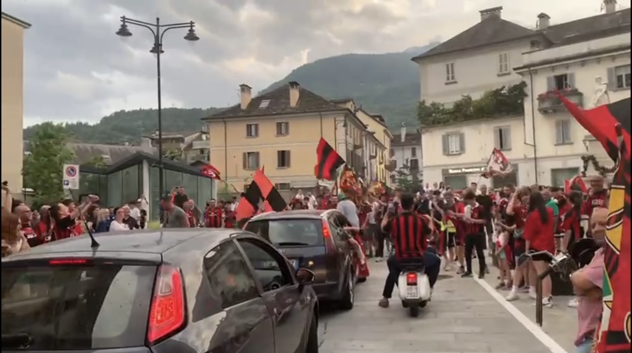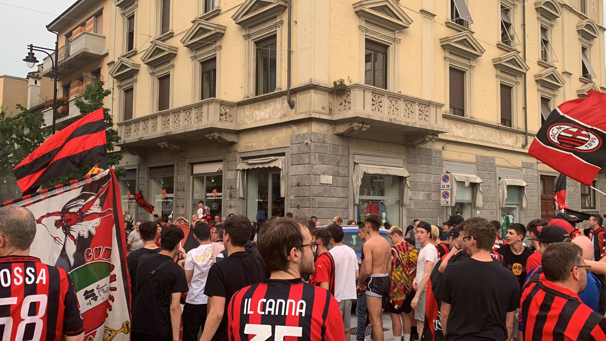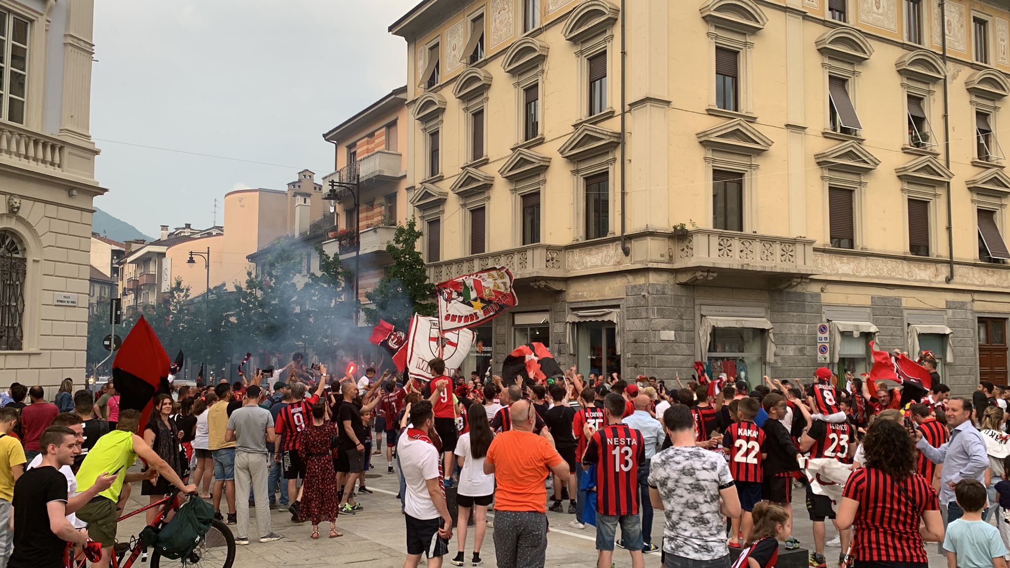 VCO- 22-05-2022-- I tifosi del Milan sono scesi in piazza al fischio finale della partita contro il Sassuolo che ha sancito, dopo 11 anni, il ritorno delle scudetto ai rossoneri.