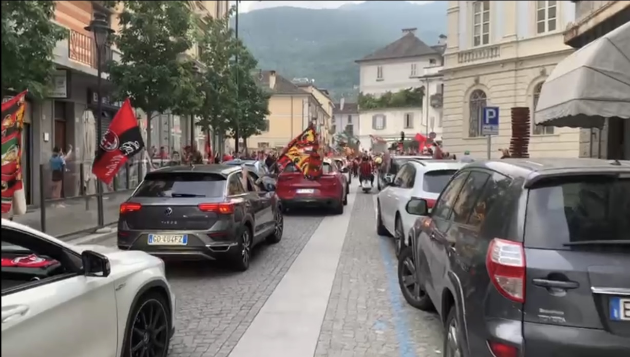 A Domodossola tradizionale carosello con accensione di fumogeni nella piazza antistante il Municipio.