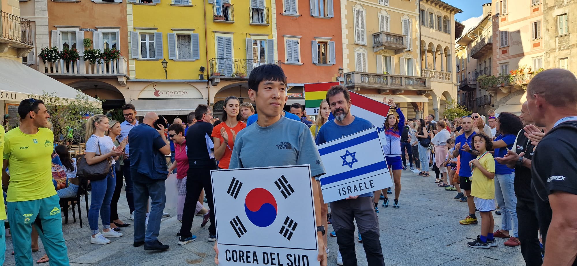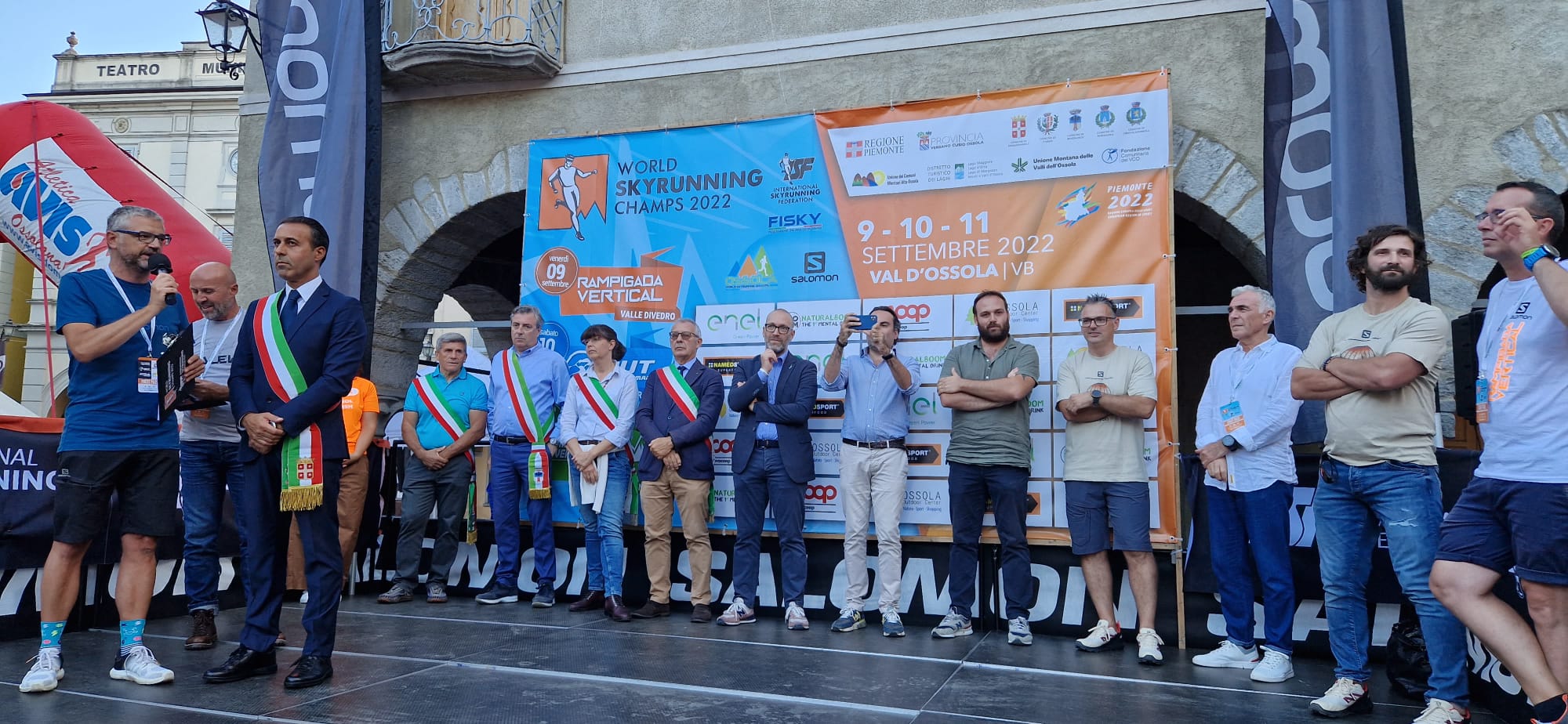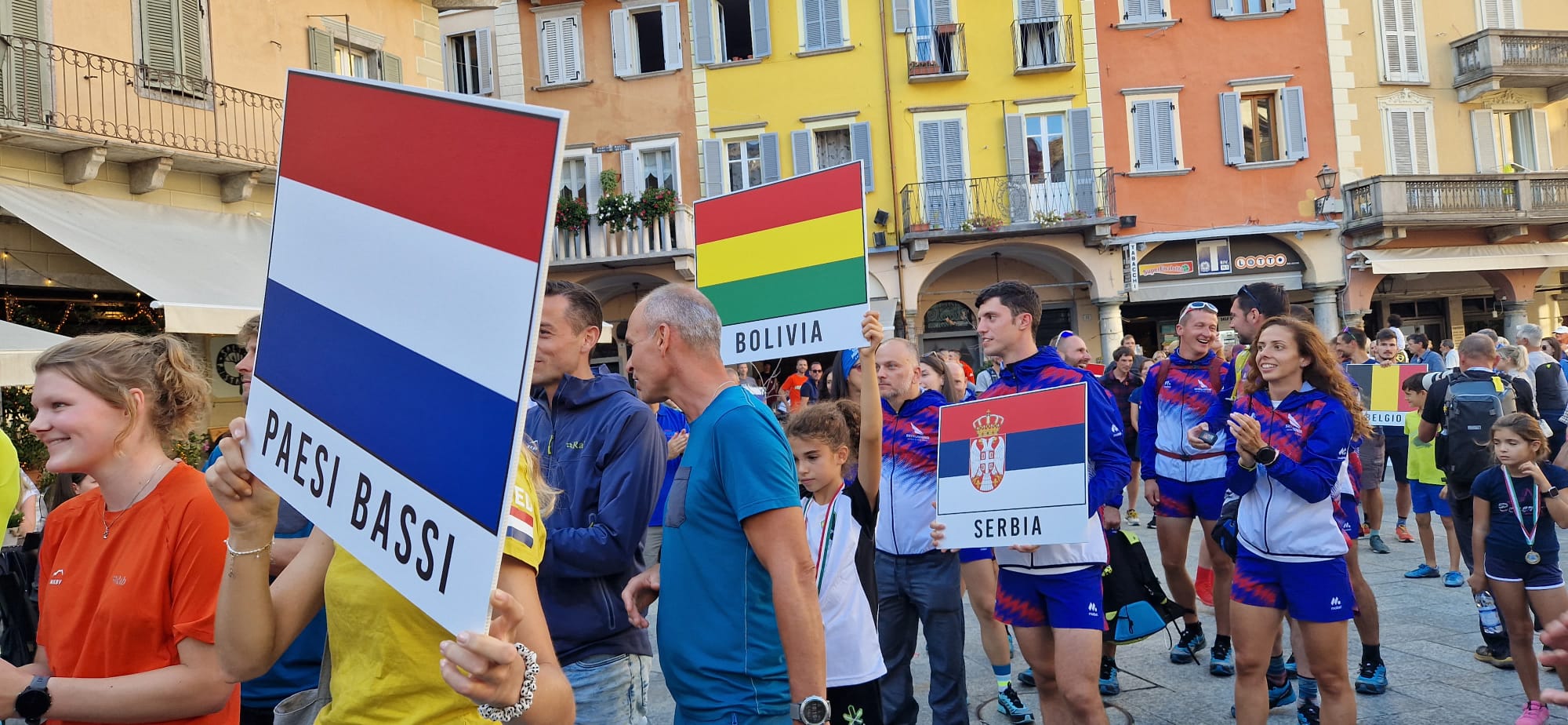 DOMODOSSOLA - 09-09-2022-- La cerimonia di apertura del Mondiale di Skyrunning, ieri pomeriggio nella cornice di Piazza Mercato, è stata una grande festa per Domodossola, con la sfilata e la presentazione delle delegazioni delle 37 nazioni partecipanti con i propri atleti. L'inaugurazione è stata preceduta dalla mini skyrace per bimbi dai 5 agli 11 anni, per le vie del centro. Ma i riflettori erano puntati sui 500 atleti dei quali 256 dei team ufficiali delle nazionali che da oggi fino a domenica partecipano al Mondiale di Skyrunning, con gare iridate a San Domenico, Formazza e Bognanco, lungo sentieri di montagna con percorsi che toccano 3 mila metri di quota.