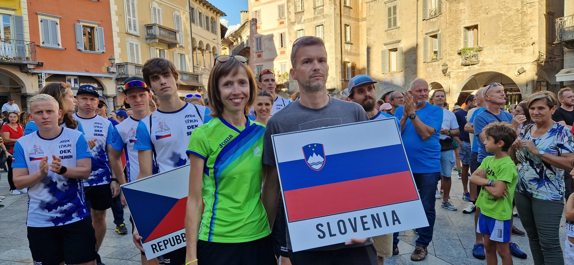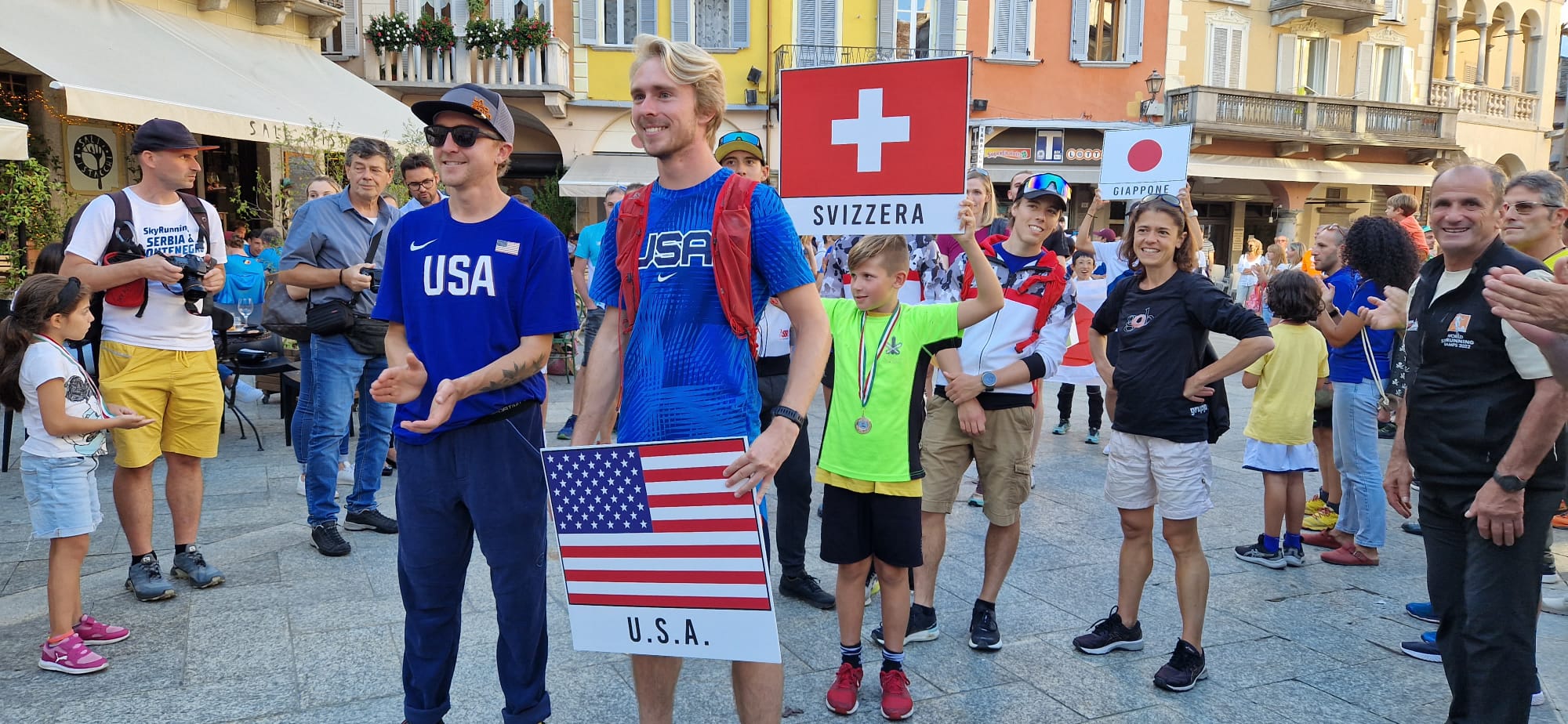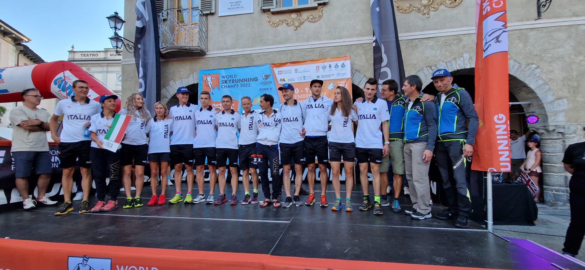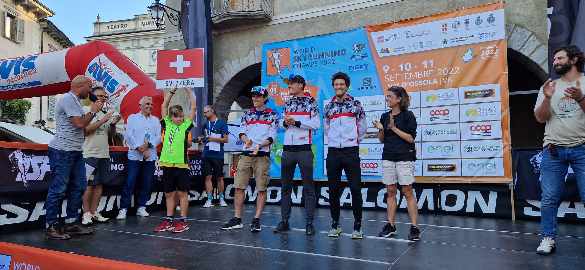 DOMODOSSOLA - 09-09-2022-- La cerimonia di apertura del Mondiale di Skyrunning, ieri pomeriggio nella cornice di Piazza Mercato, è stata una grande festa per Domodossola, con la sfilata e la presentazione delle delegazioni delle 37 nazioni partecipanti con i propri atleti. L'inaugurazione è stata preceduta dalla mini skyrace per bimbi dai 5 agli 11 anni, per le vie del centro. Ma i riflettori erano puntati sui 500 atleti dei quali 256 dei team ufficiali delle nazionali che da oggi fino a domenica partecipano al Mondiale di Skyrunning, con gare iridate a San Domenico, Formazza e Bognanco, lungo sentieri di montagna con percorsi che toccano 3 mila metri di quota.
