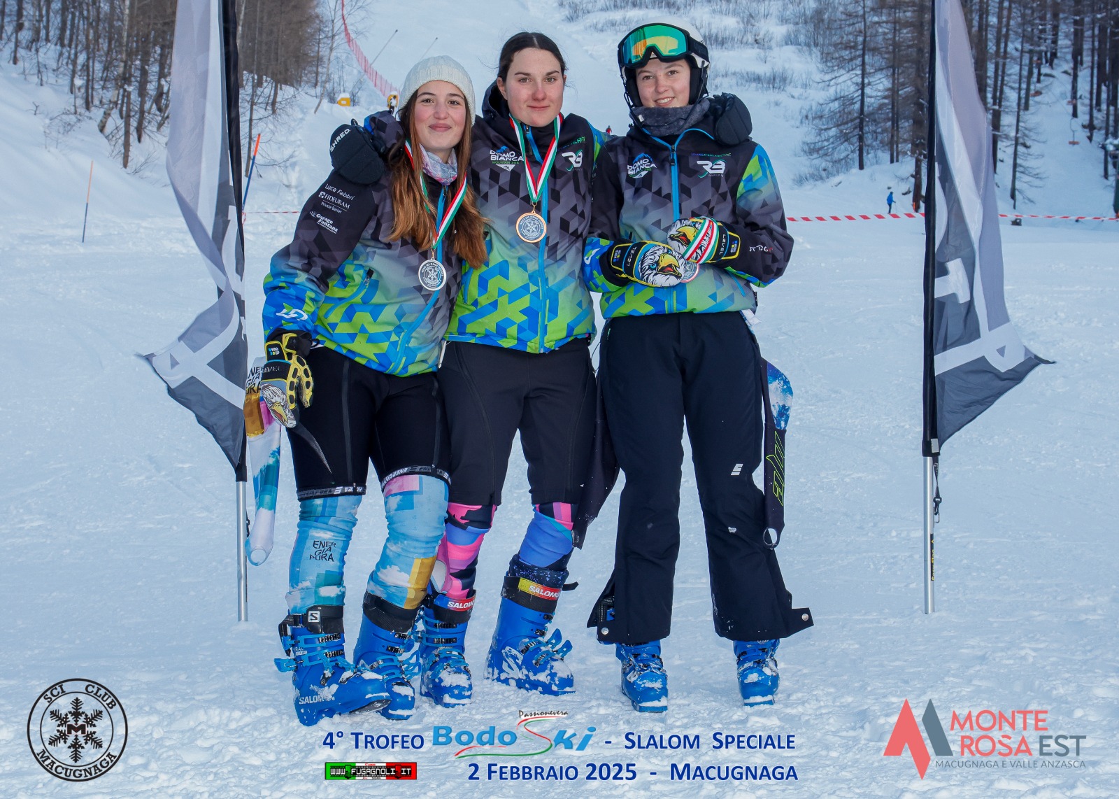 Nello slalom speciale, tra gli under 14 sul podio femminile troviamo prima e seconda due iscritte allo SC Formazza: Gaia Cervini e Aurora De Nicolo; al terzo posto Camilla Villaraggia del Revolution Ski Race.