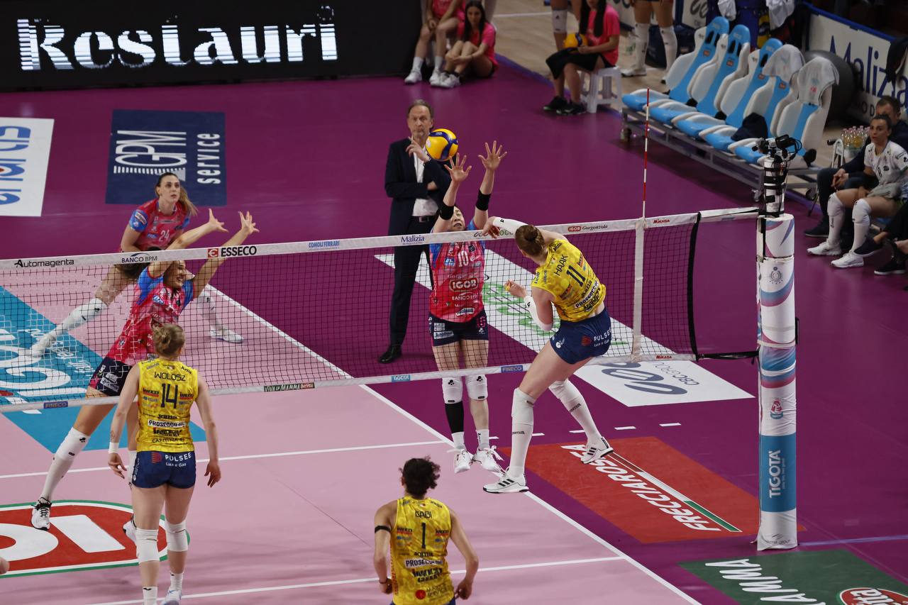 Novara parte forte con Alsmeier che fa 8-6 in diagonale stretta e poi chiude in maniout uno scambio infinito (10-7), Bonifacio mura Haak e fa +4 (11-7) con Santarelli che ferma il gioco. Fahr accorcia (11-9), Tolok scappa di nuovo (15-11) e poi firma il 19-16 in maniout; non si arrende Conegliano (21-20), Tolok spara out il punto del sorpasso (22-23) e ai vantaggi è il nastro a spingere a terra l’ace di Fahr sul 26-28.