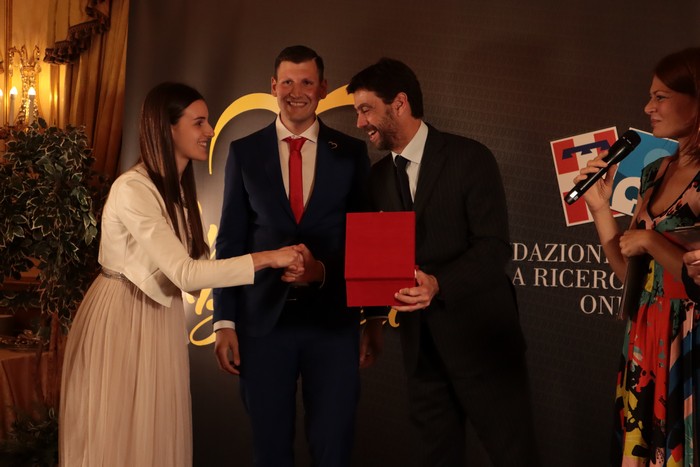 e solidarietà in… bianconero. La prima edizione del galà “Cuore bianconero” organizzato dagli Juventus club Mottarone e Malpensa presieduti da Livio Maggi e Fabrizio Scirli, ieri sera a Stresa ha celebrato i successi della Vecchia Signora, premiando anche l’attività benefica sostenuta dalla famiglia Agnelli, che con il presidente bianconero Andrea porta avanti l’impegno nella Fondazione piemontese per la ricerca sul cancro –tramite l’istituto di ricerca di Candiolo, in provincia di Torino– di cui la mamma Allegra è presidente. Portando sul lago i vertici della Juve come è stato per anni con la Castagna d’oro, i due club hanno espresso l’intenzione di avviare un nuovo premio con cadenza periodica che abbini al tifo e alla passione bianconera, appunto, la solidarietà. Il primo passo è stato l’ideale assegno d 12.000 euro raccolti tra i circa 200 ospiti del Regina Palace e gli sponsor della serata, cui si aggiungono i 2.000 euro frutto dell’asta delle maglie autografate di Cristiano Ronaldo, Federico Bernardeschi e Mattia Perin. A ricevere il contributo c’erano il direttore generale della Fondazione Gianmarco Sala, il direttore generale Antonino Sottile e il direttore marketing Andrea Bettarelli. La prima edizione del premio "Cuore bianconero" è stata consegnata a Fabio Paratici, il ds della Juve, presente sul Lago Maggiore –come accadde, ha raccontato, nel periodo vissuto a metà anni ’90 come calciatore del Novara– insieme al presidente Agnelli. I due, molto disponibili anche nelle foto ricordo e negli autografi con i tifosi, hanno accuratamente evitato il tema del giorno, la conferma o meno di mister Massimiliano Allegri sulla panchina bianconera, notizia inseguita anche dai giornalisti delle testate nazionali accreditati a Stresa. È stata premiata anche Rita Guarino, allenatrice del team Juventus Women reduce dal secondo scudetto consecutivo. E Alberto Allesina, imprenditore delle rubinetterie Far di Gozzano e patron del Gozzano calcio, che ha appena concluso con la salvezza il suo primo, storico, campionato di serie C.